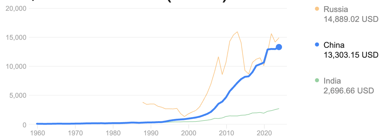 우선 이코노미스트의 인도 GDP 성적표부터 보기로. 이거는 분기별 아니고 연간 성장률입니다. 빨간색은 GDP 성장률, 오렌지 색은 1인당 GDP 성장률. 1% 미만으로 성장하는 일본과 그 전처를 밟게 될 대한민국이 부러워할 수치이긴 한데요, 그래도 중국 따라갈려면 아직 멀었다 그쵸. 아래 아래 표 보면 인도의 현재 1인당 GDP가 3000불 미만입니다. 여기서 7% 성장한다면 3000 × 0.07 = $210늘어나는 거잖아. 근데 중국은 1인당 GDP 13000불이니 5%만 성장해도 13000 × 0.05 = $650늘어나지. 참고로 한국은 대략 35000불에 1% 성장한다면 350불 늘어나겠네. 물론 환율의 변수로 정확한 수치는 달라질 수 있지만요.