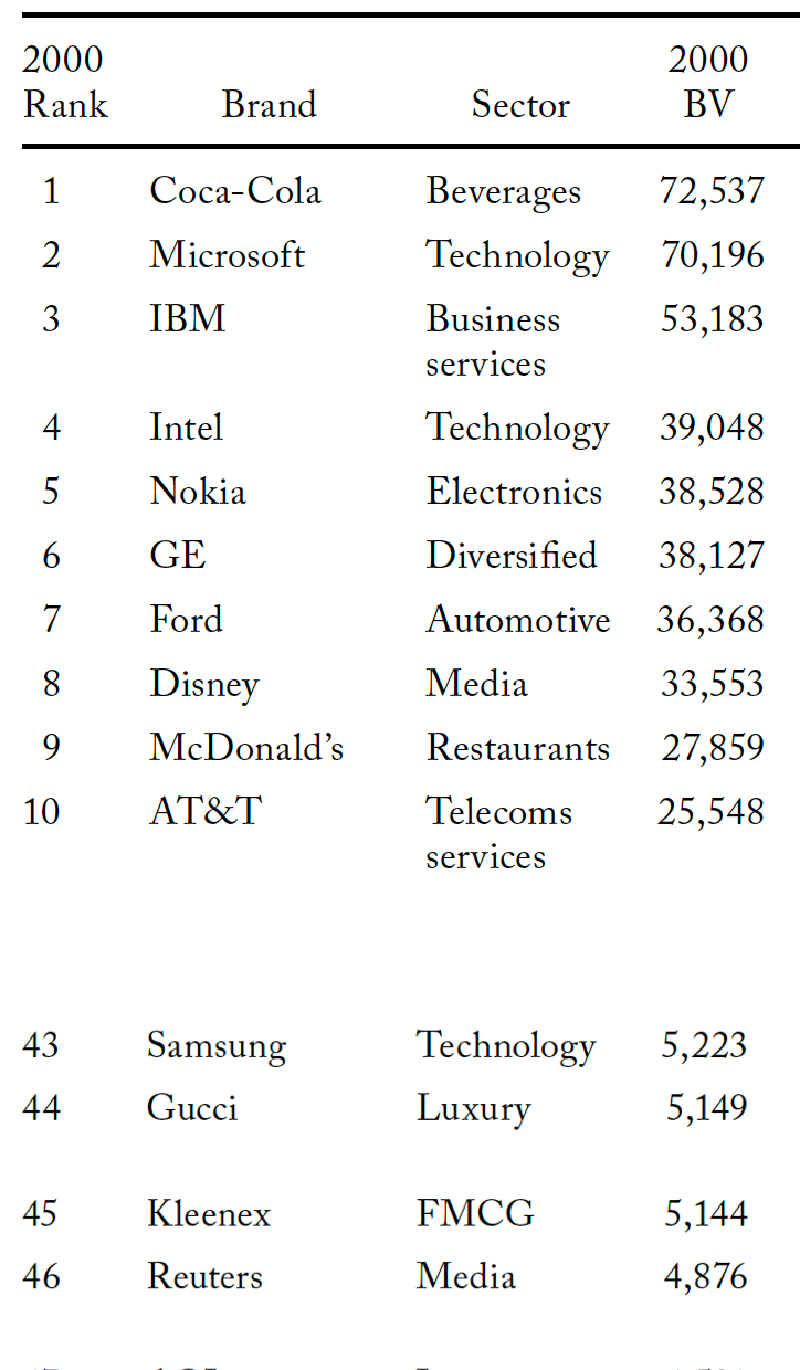 아래는 2000년 당시 글로벌 브랜드 순위입니다. (from Interbrand) IBM 3등이야! 삼성은 43등. 오우 2류 기업이라곤 하지만 삼성, 그 당시에도 구찌보다 더 가치있는 브랜드였잖아. 서울대 이 자식 우리 국뽕기업 너무 폄하했네.