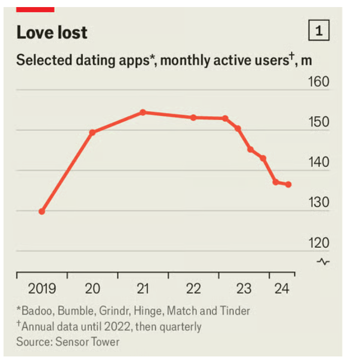 이코노미스트도 나랑 생각이 똑같아. 여러분 코로나도 끝났으니 이제 틴더 그만하고 진짜 사랑 합시다!
