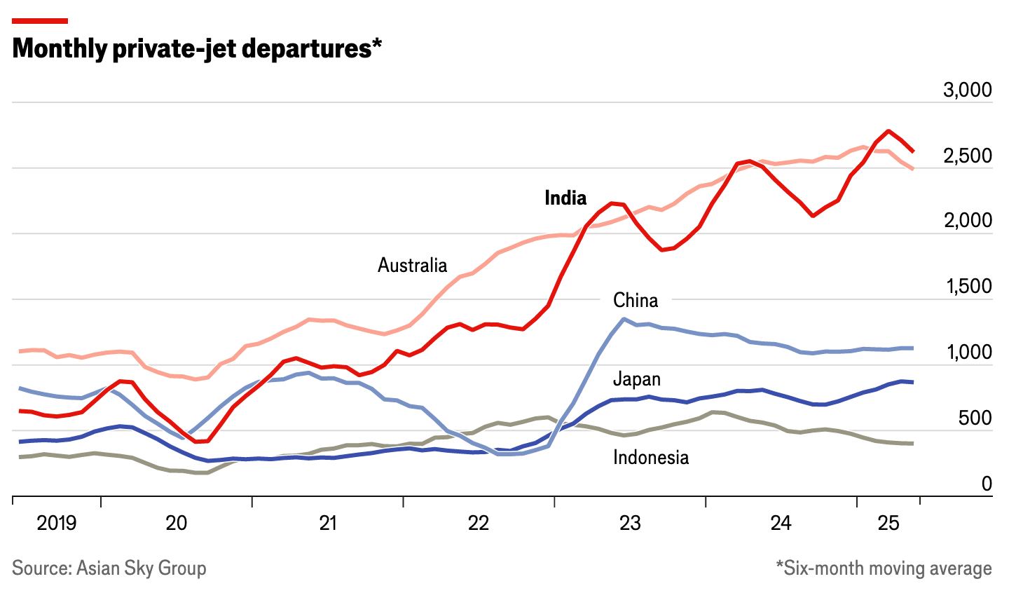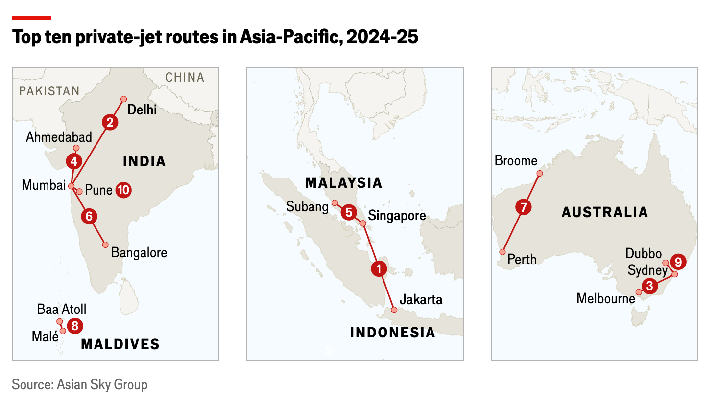 그래도 못 믿겠다고? 자료는 얼마든지 있지. 아래는 지난 2년간 전세기 항로 탑텐. 호주야 부자들 나라니까 그렇다 칩시다. 인도는 아주 신났네 신났어. 참고로 인도 1인당 소득은 호주의 10분의 1도 안됩니다만, 인도 부자들 서로 돈쭐을 내줄려고 안달이 난 것은 지도보면 바로 알겠어요.